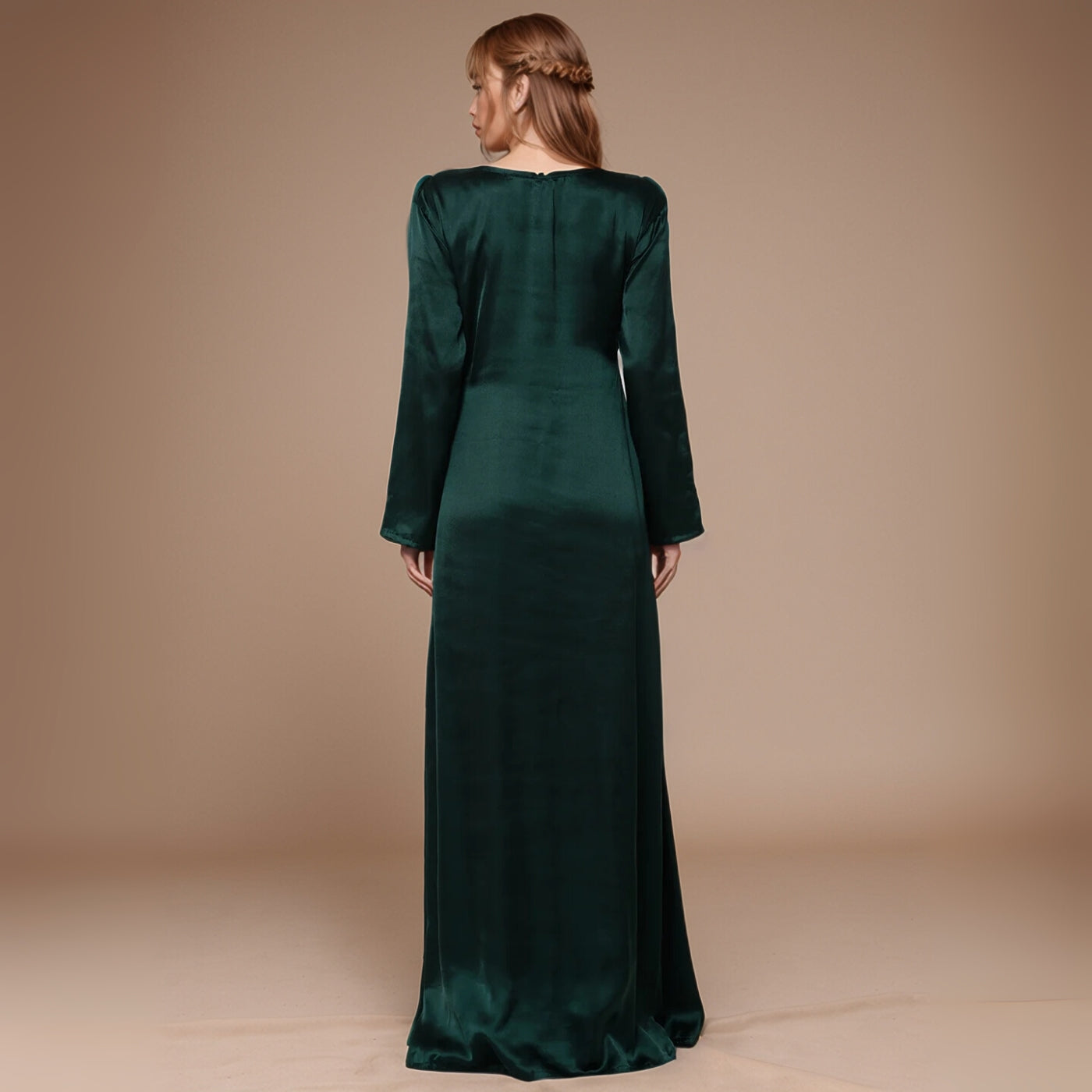 Step into a world of timeless beauty with the Emerald Elegance Kaftan, a masterpiece that