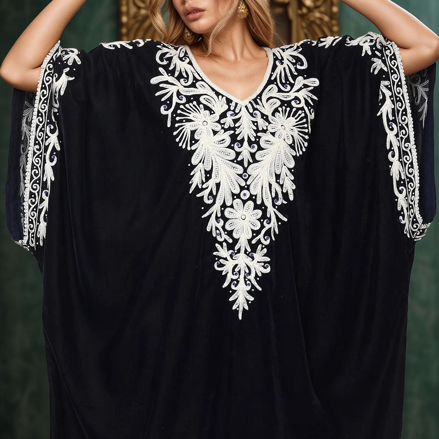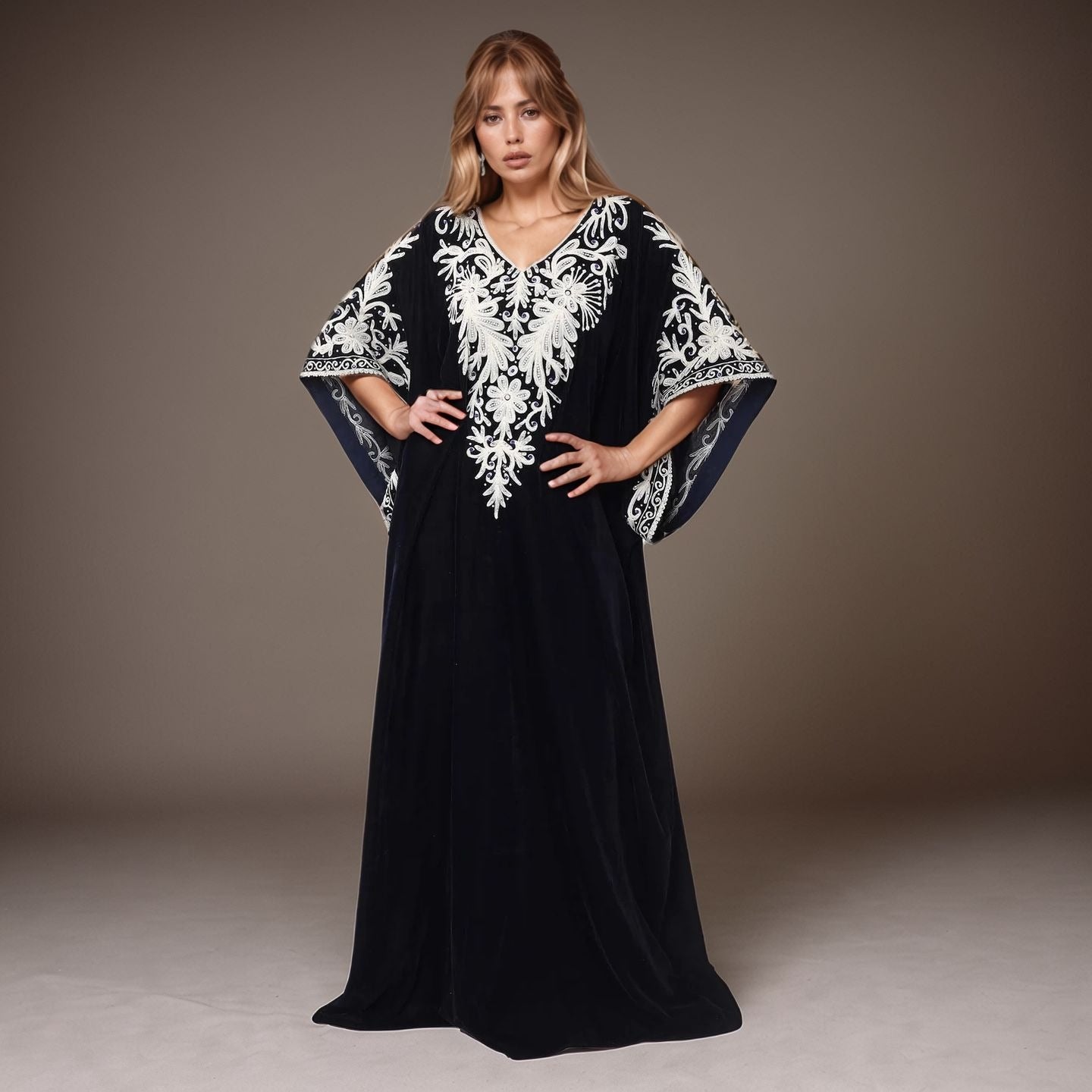 View compareMajestic Black Velvet Kaftan with Embroidered Elegance