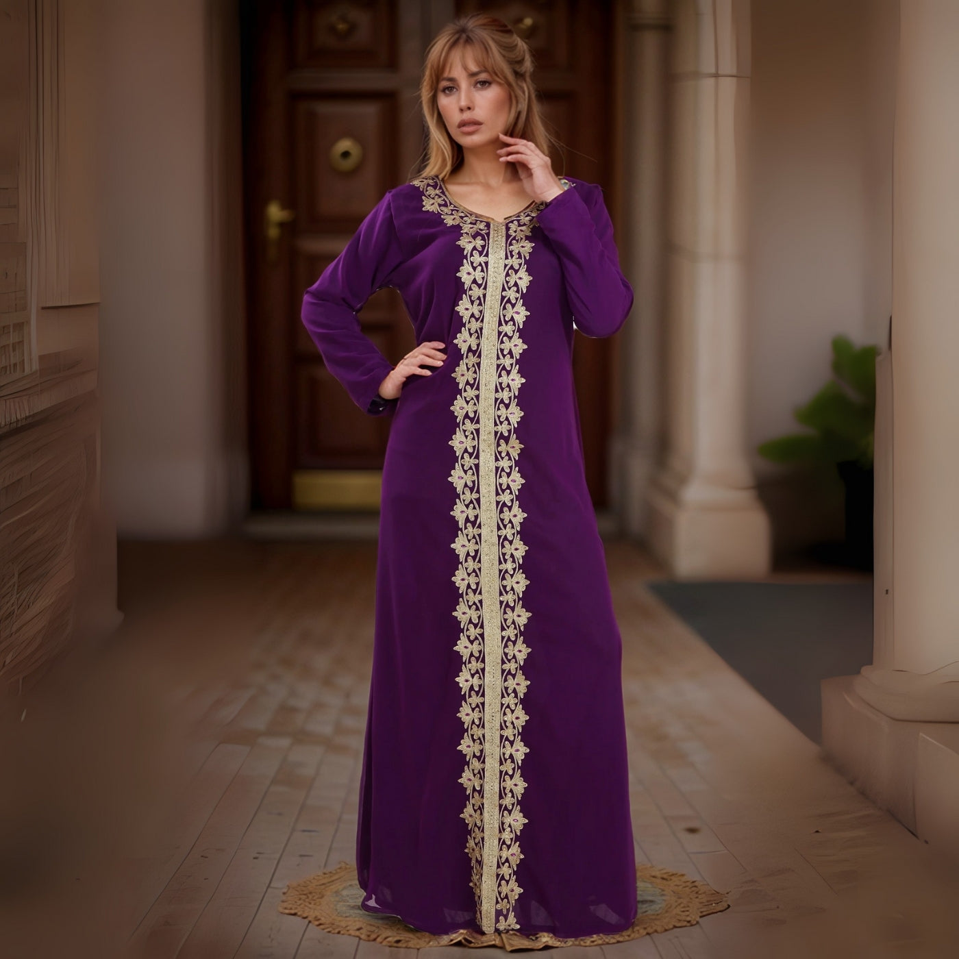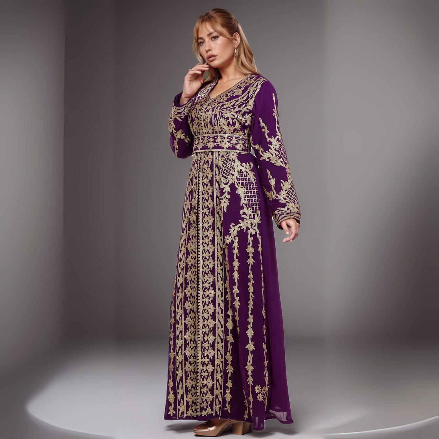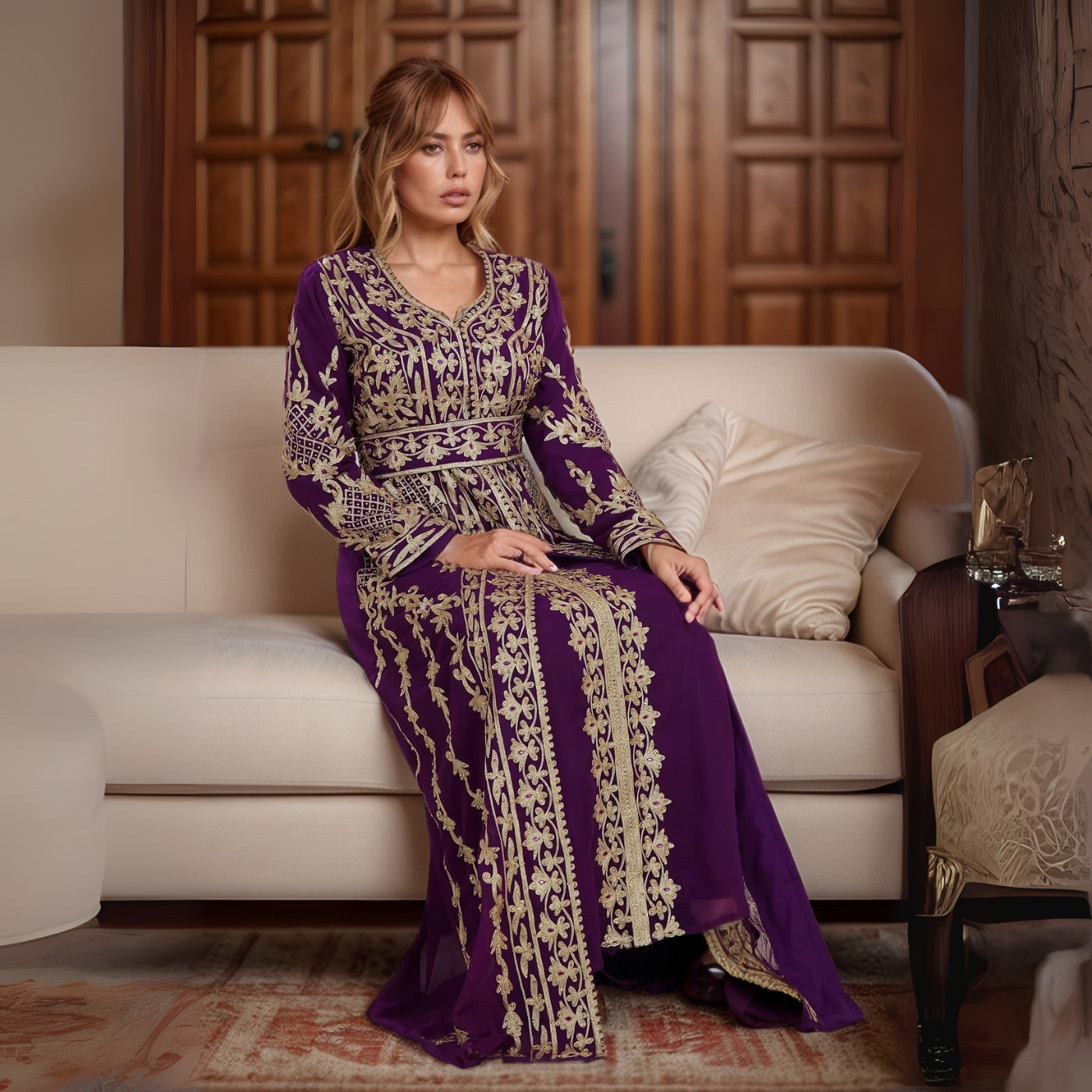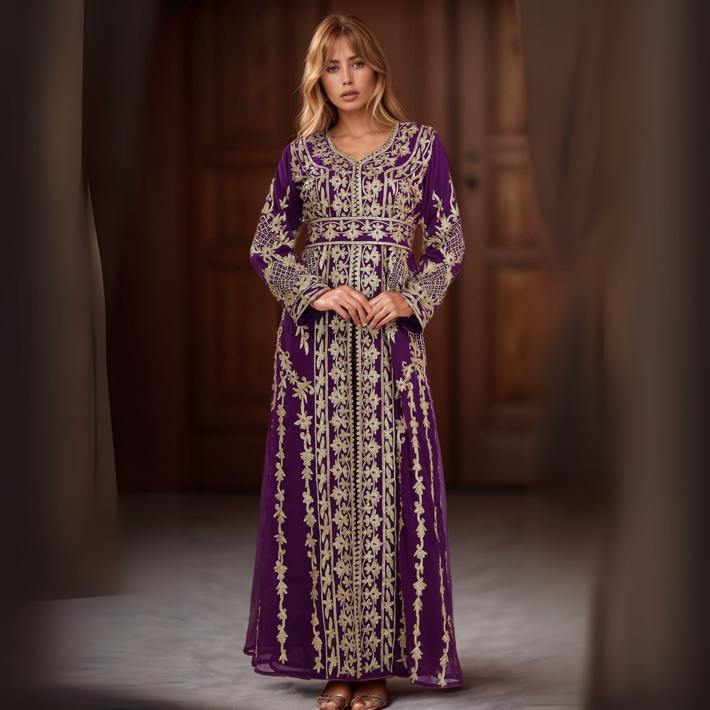 Step into a world of timeless beauty with the Moroccan Elegance Purple Kaftan, a