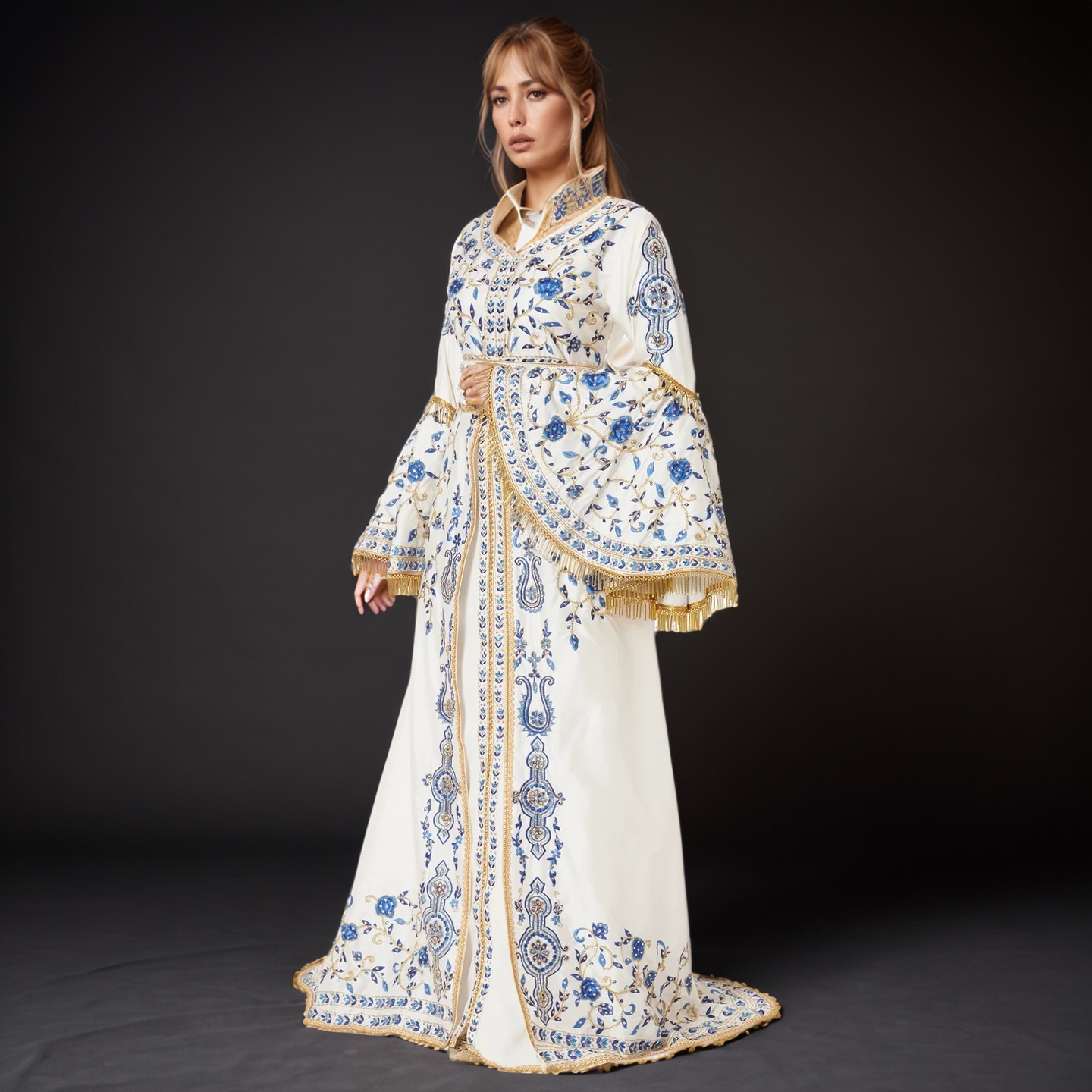 cherished as a kaftan, jellabiya, or mansouria across the globe. This breathtaking garment,