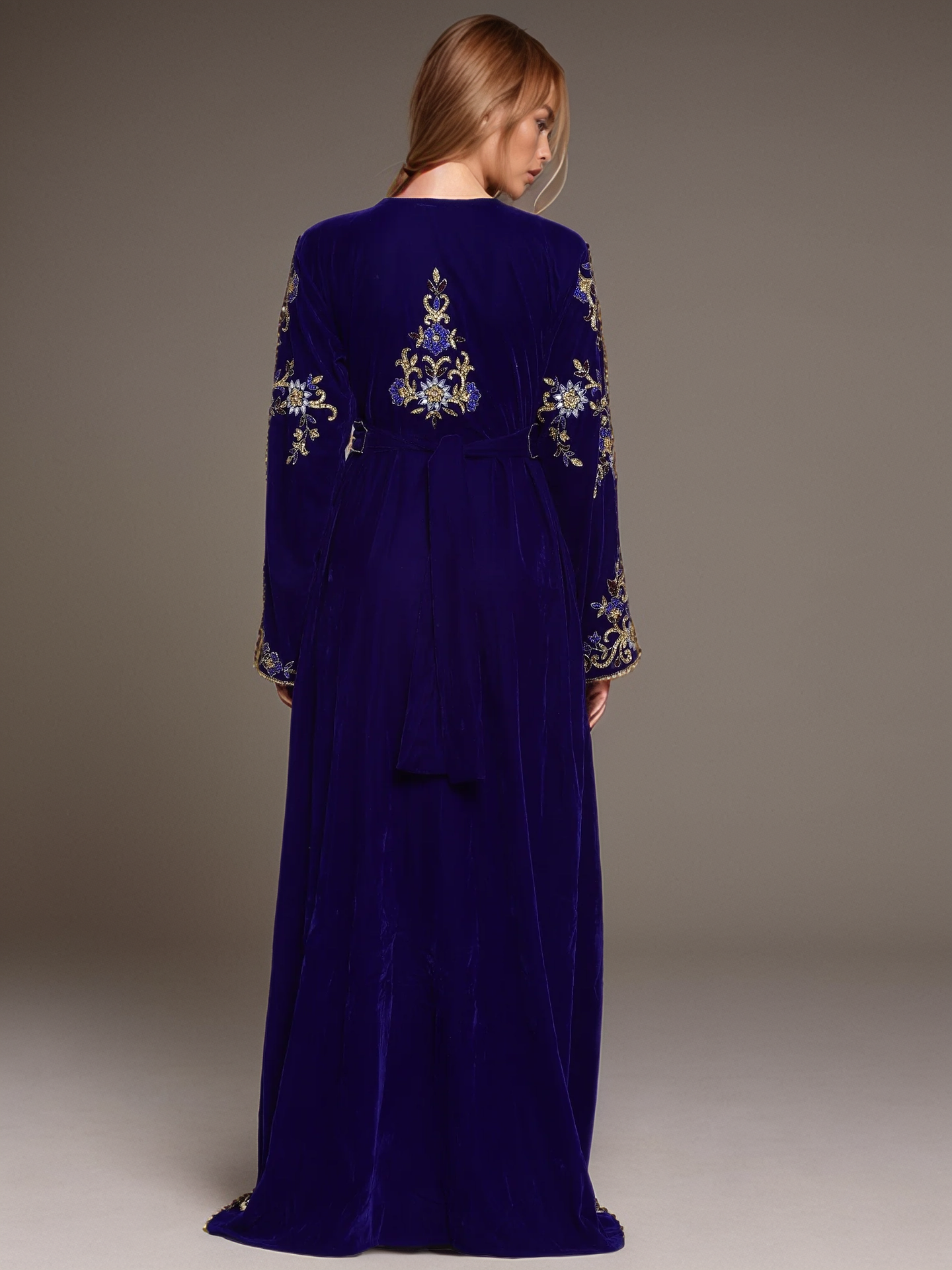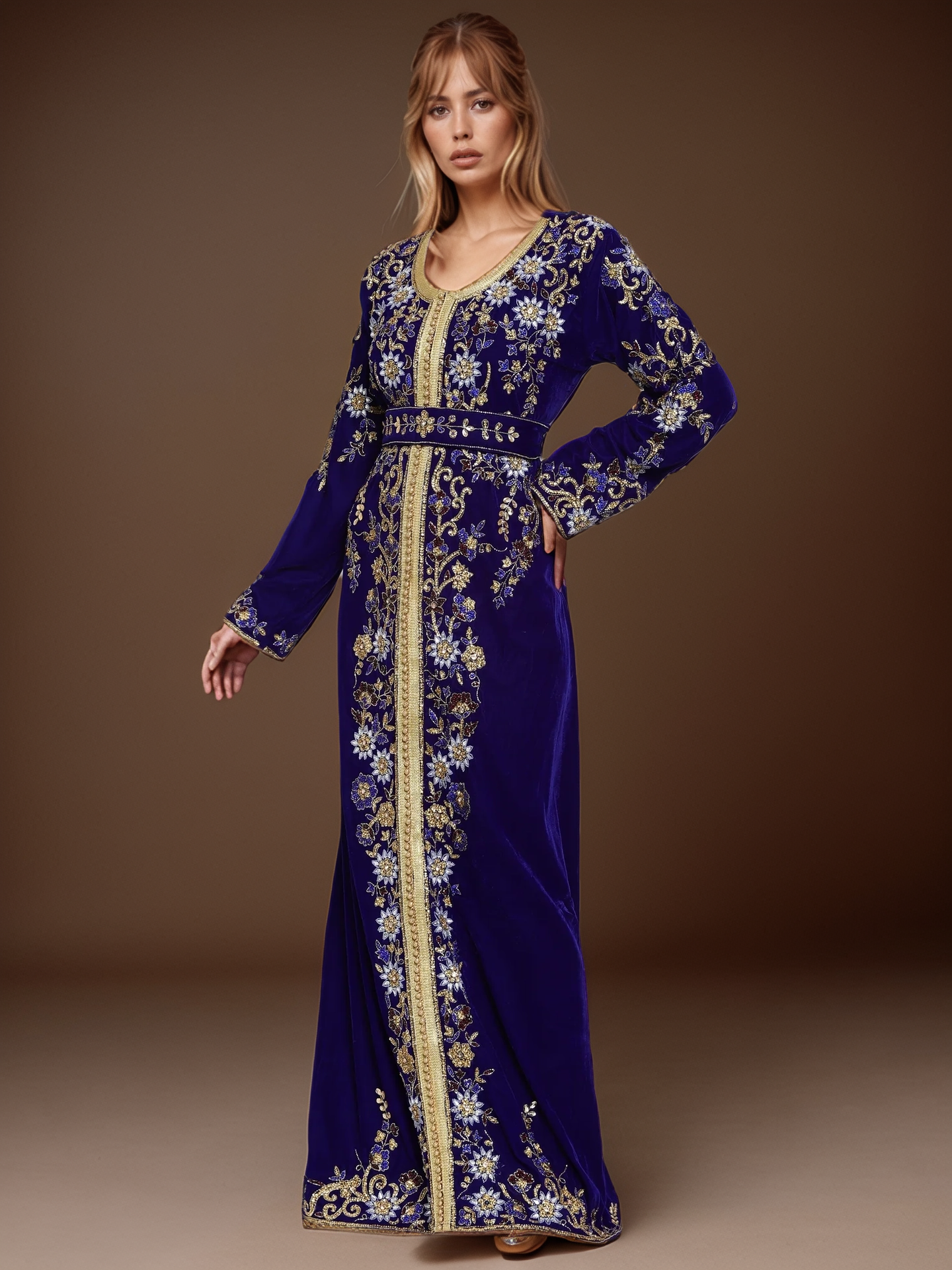 Step into a world of timeless elegance with our Royal Purple Moroccan Kaftan, a